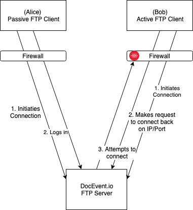 However, an active client attempts to connect back to the server (Point 3), and if the firewall is not configured for this purpose it will drop the request and the FTP connection will fail.