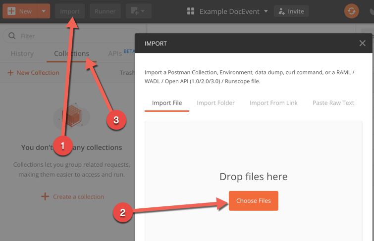 Once launched, click Import and import the swagger.json (or yaml) file you just downloaded. After importing, click the Collections tab.